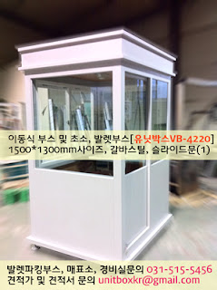 이번에 소개하는 이동식 주차초소 스타일의 [유닛박스 VB-4220]모델은 발렛파킹부스나 주차부스, 경비초소(경비실)로 많이 사용되고 있는 모델입니다.
