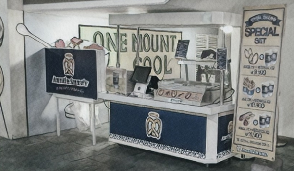 먹거리 프랜차이즈회사에서 백화점이나 대형할인매장, 워터파크, 행사장 등의 공간에서 홍보 겸 팝업판매 하기 좋은, 이동식 가판대나 행사매대 스타일의 (스페이스플랜 SP_508)를 제작 해 보았습니다.