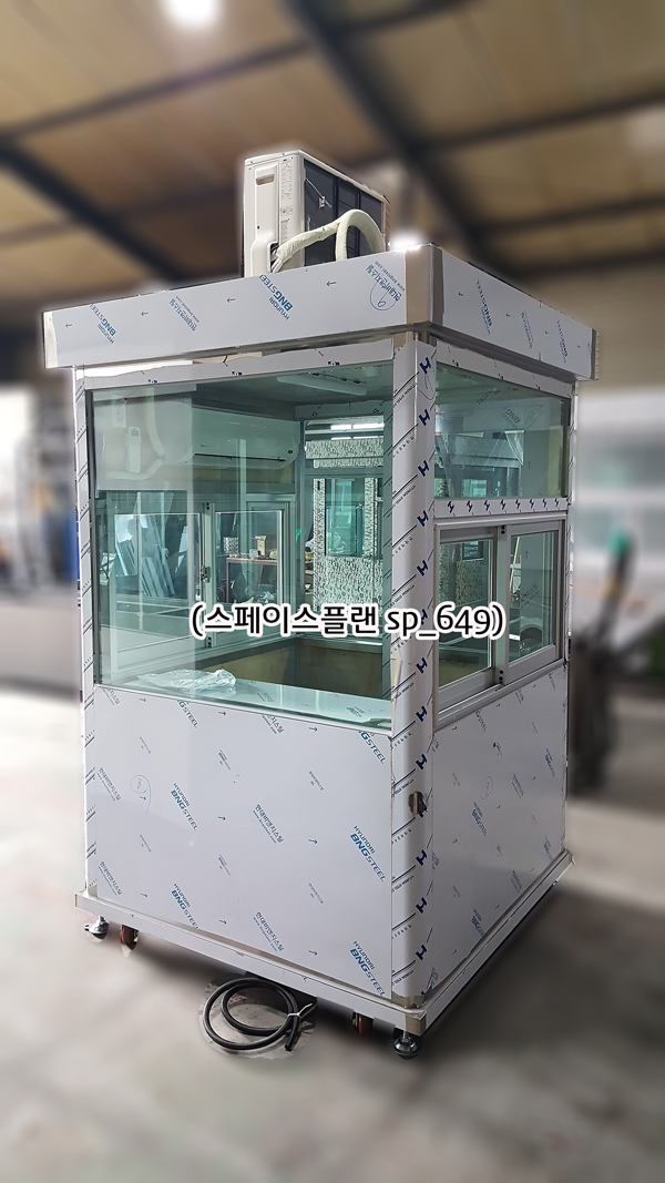 )> (스페이스플랜 SP_649)는 주차관리 및 요금정산을 위해 4면 전체가 창문구조가 설치되어 있으며, 좌측면과 우측면에는 알루미늄샤시가 설치되어 있습니다.