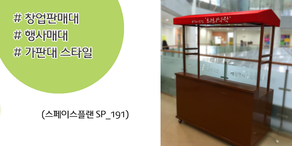 )> (스페이스플랜 SP_191)은 디자인 포장마차 스타일의 창업판매대나 행사매대를 위해 복지관내에 설치하였습니다.