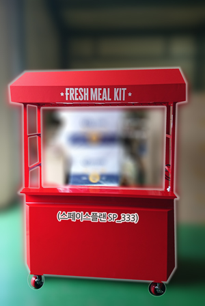 이마트, 롯데마트, 홈플러스, 코스트코 등과 같은 할인마트에서 계절별, 시즌별 입점하여 먹거리나 음료 판매나 프로모션을 진행을 고려하신다면 이동식매대 스타일의 (스페이스플랜 SP_223)스타일로 어떠하신가요?