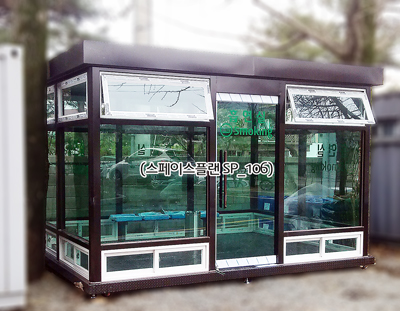 건물 내부의 흡연공간이나 휴게공간이 부족한 쇼핑몰이나 전시장 등에서 건물 외부에 설치한 이동식구조의 흡연부스 (스페이스플랜 SP_818)입니다.