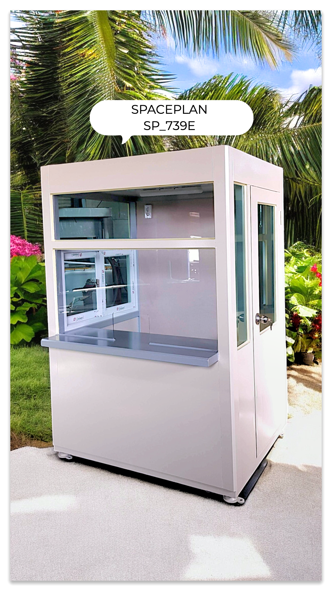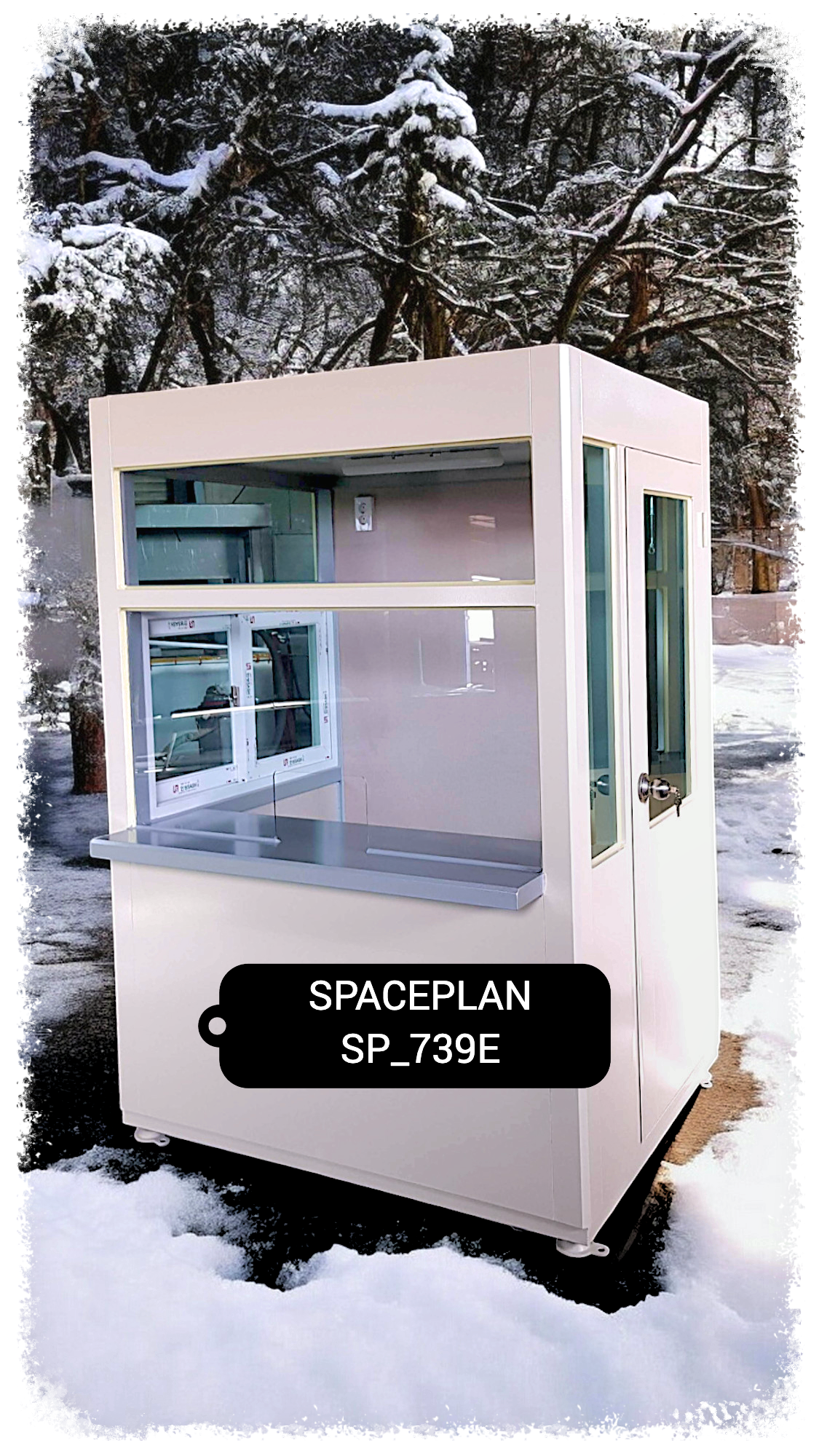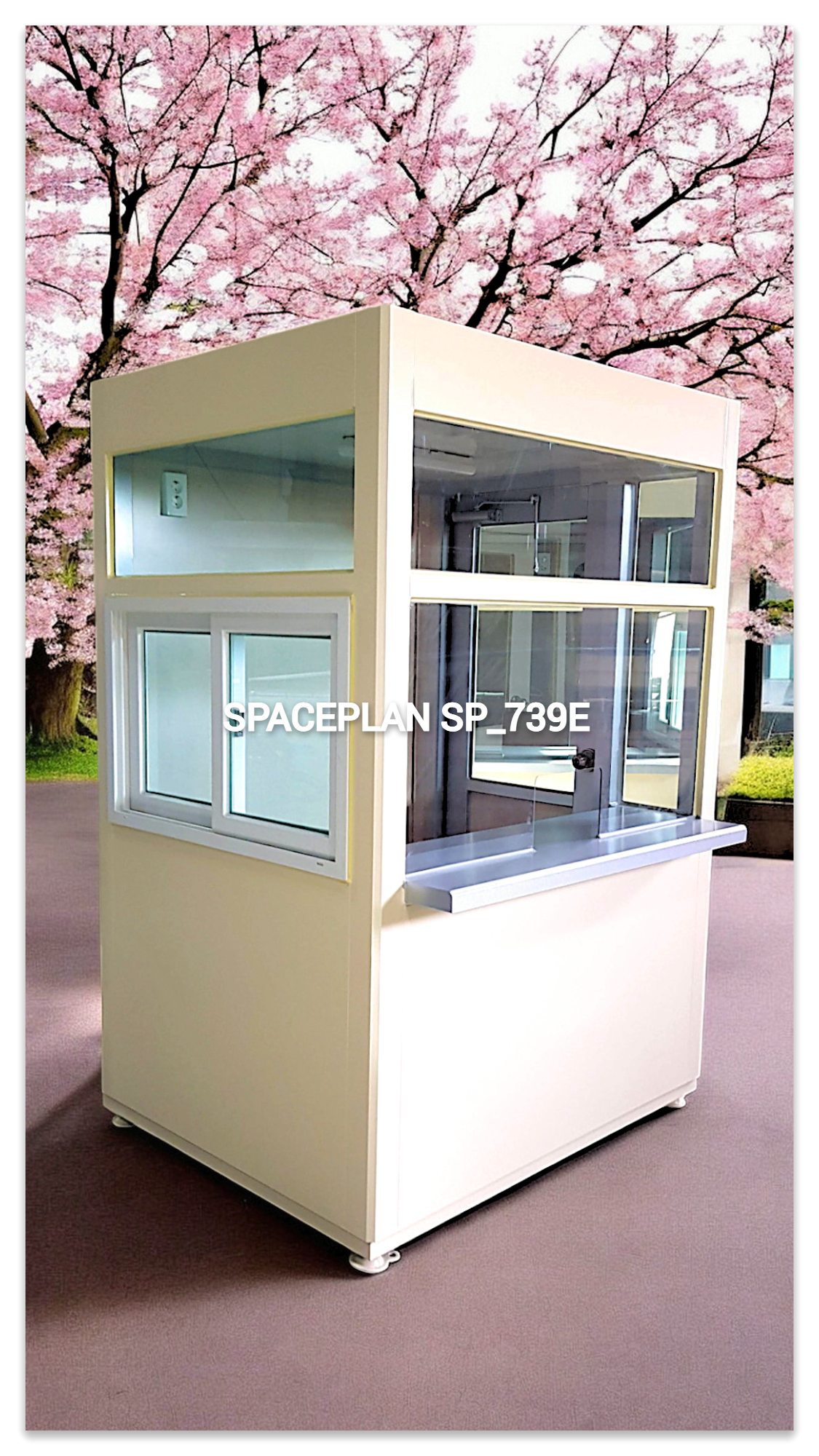 )> (스페이스플랜 SP_739E)은 갈바 철재질로 제작되었으며, 행사와 장소에 맞춰 쉽게 설치하고, 이동할 수 있는 편리함이 가장 큰 장점인 미니 매표소 스타일입니다.