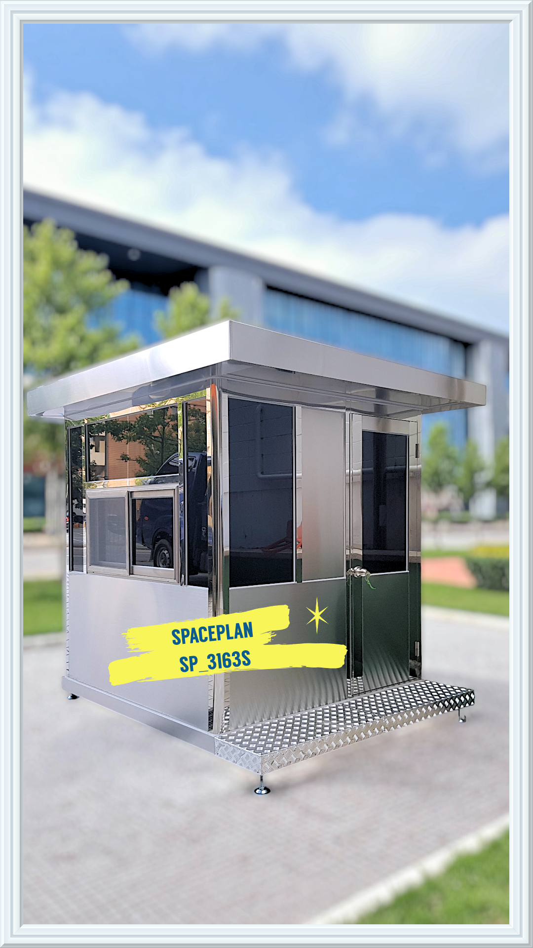 ▩ (스페이스플랜 SP_3163S)스타일은 관공서 보안시설, 방범시설, 아파트경비실, 경계초소, 출입통제 관리부스, 이동식 사무실, 휴게부스, 근로자휴게실 등에서도 사용하기 좋으며, 고객님께서 원하시는 디자인부스에 대한 주문제작도 가능합니다.