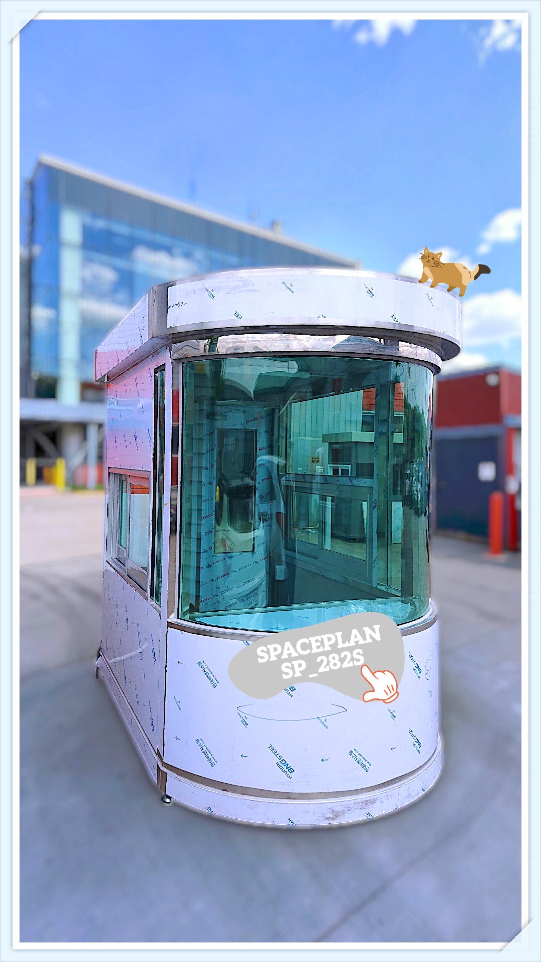 )> (스페이스플랜 SP_282S)은 스테인레스 재질로 제작되었으며, 정면부가 반원형구조로 제작된 야외 이동식 경비실초소 입니다.